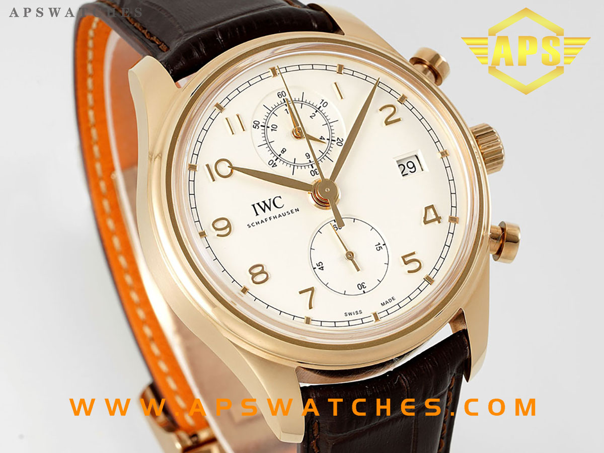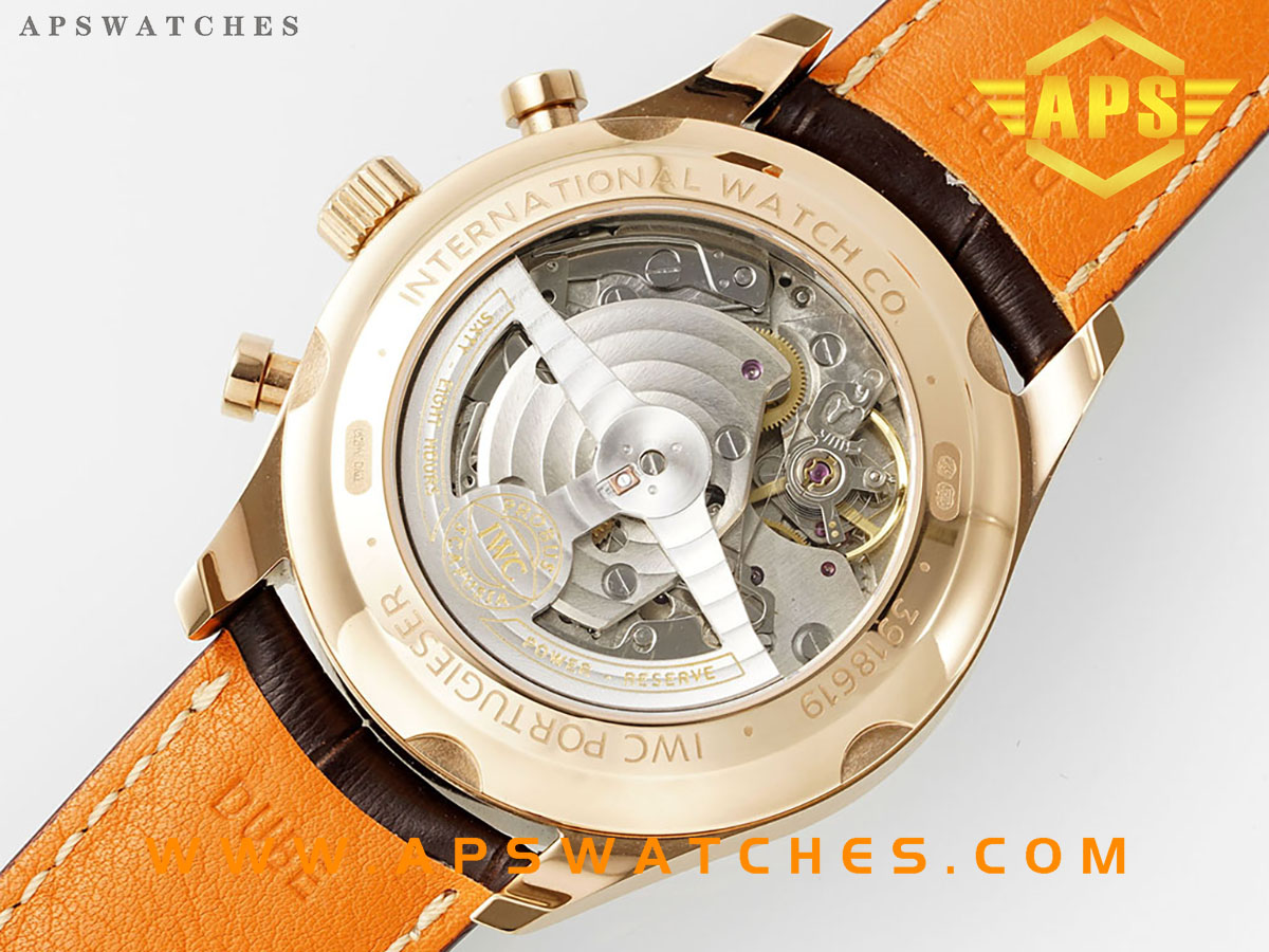 不仅于此,APS厂一体化cal89361时计机芯所有功能全部实现包括操作手感和调日历方式完全吻合正品机芯,而且还原了计时分针和计时时针在同一个小表盘上的功能!其实但从这一点就能看出来APS厂对于这款新品的有多用心!如果喜欢万国葡萄牙系列,这款APS厂的复刻版本,其实还是相当值得入手的!感兴趣的表友何不入手一下,这款尽显奢华感,且不存在一眼假的玫瑰金款万国葡萄牙计时经典款式,APS厂复刻腕表!
